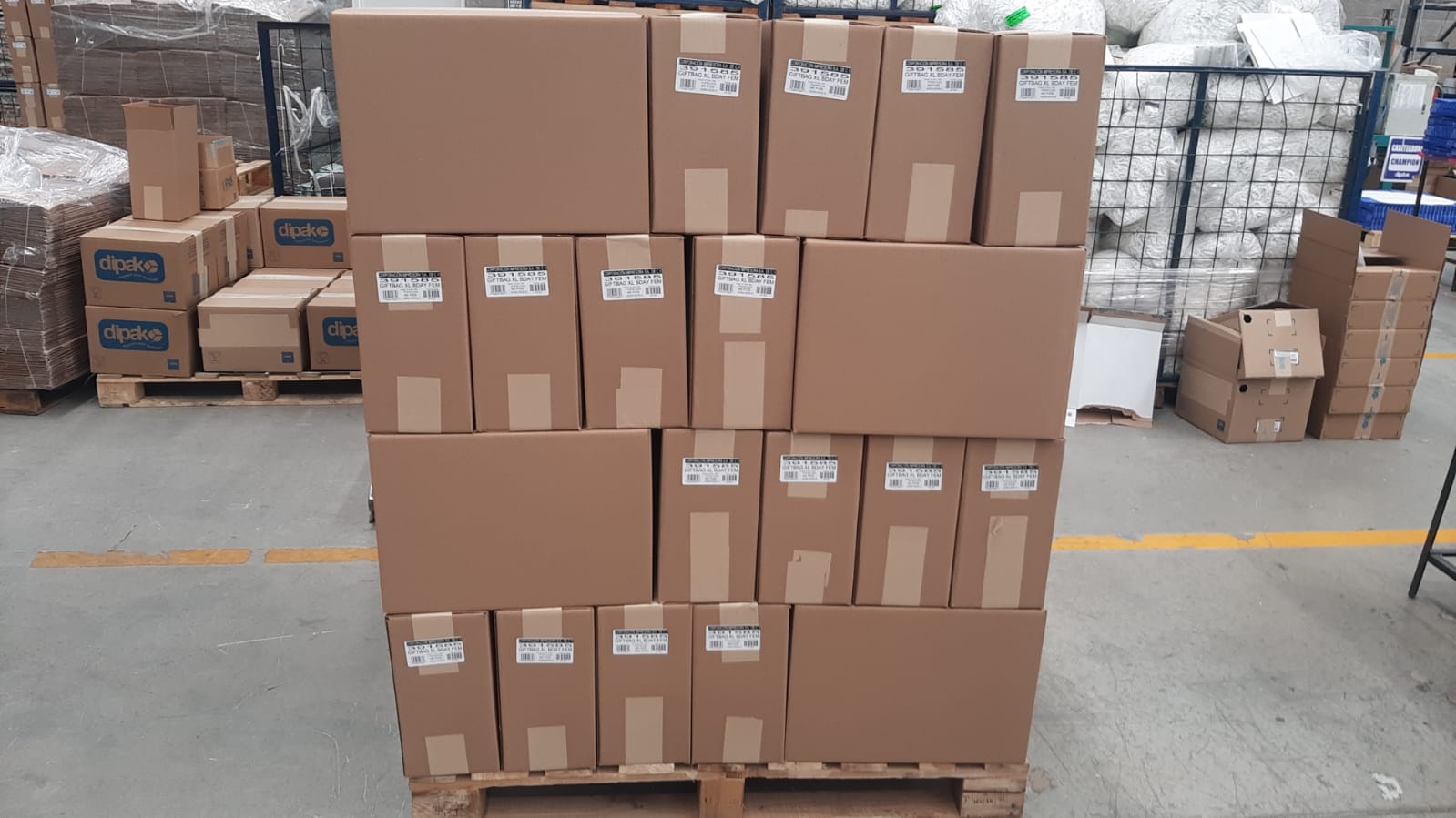bolsas se estiban en tarimas o en jaulas.